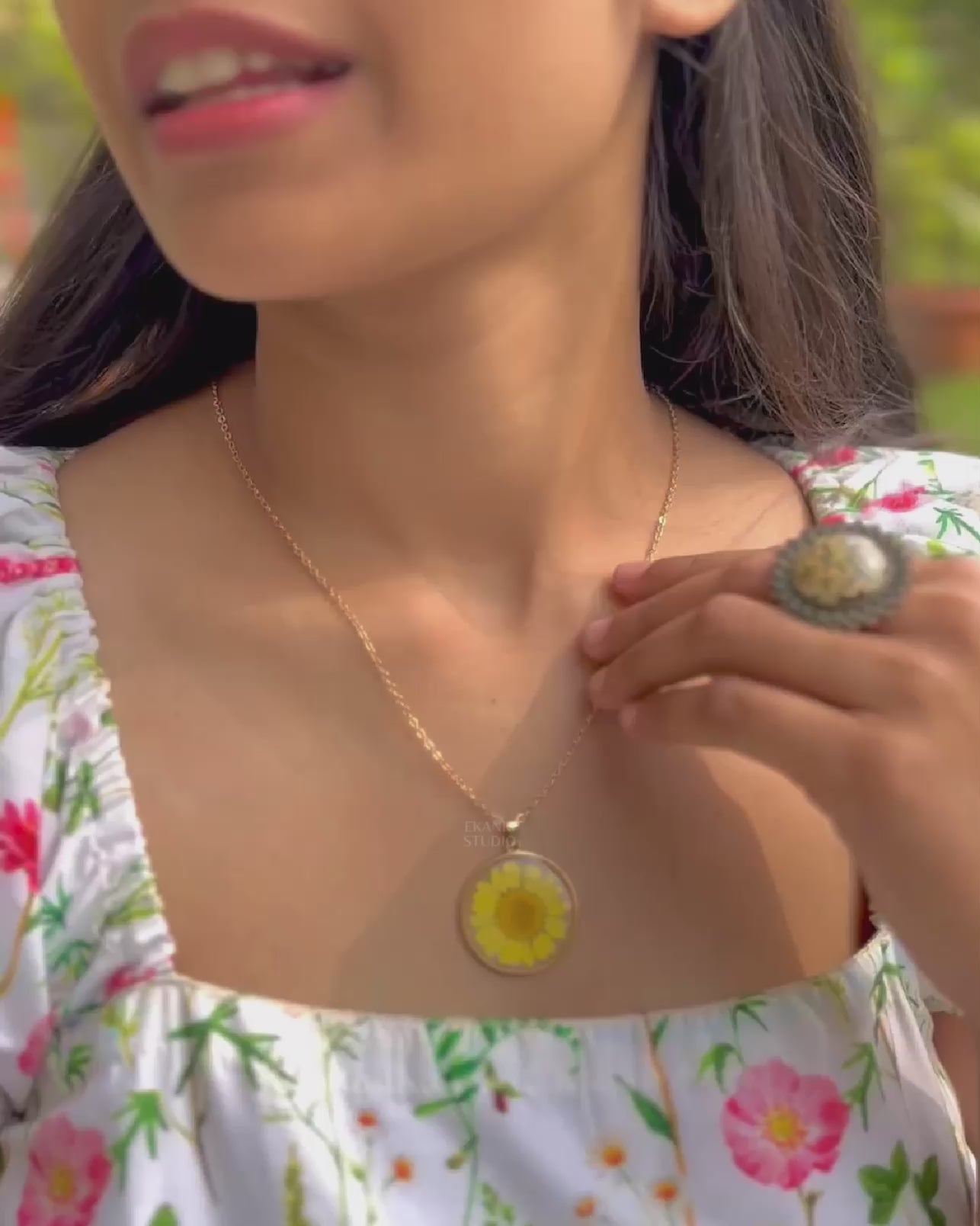 Step into a world where nature's poetry meets the art of adornment with our botanical jewelry collection. Picture wearing a delicate piece that not only complements your style but also cradles the beauty of real flowers that stand the test of time. It's more than jewelry; it's a personal connection to the everlasting allure of nature.