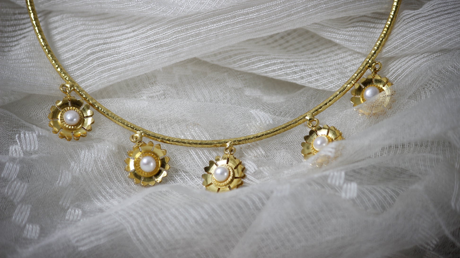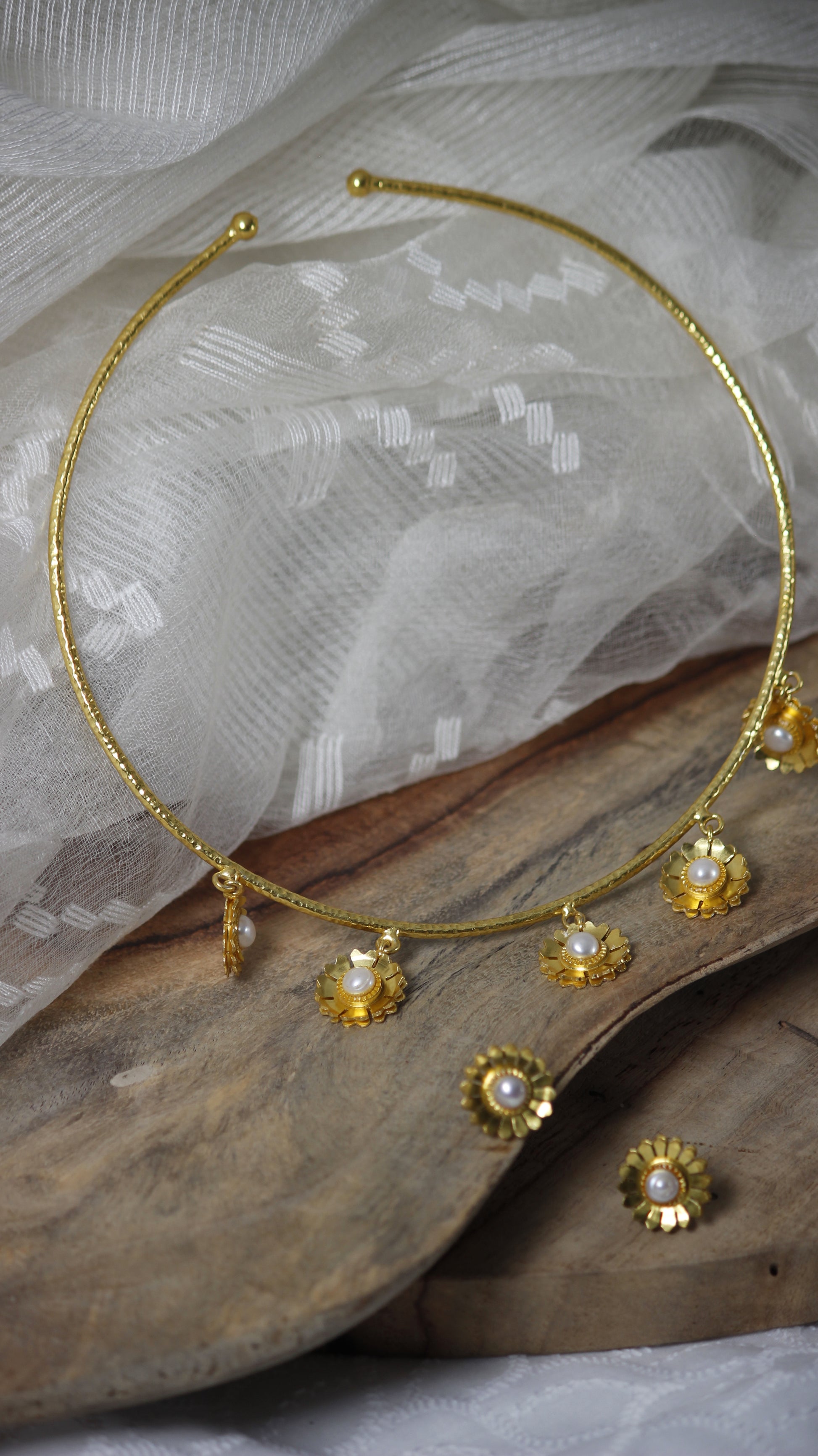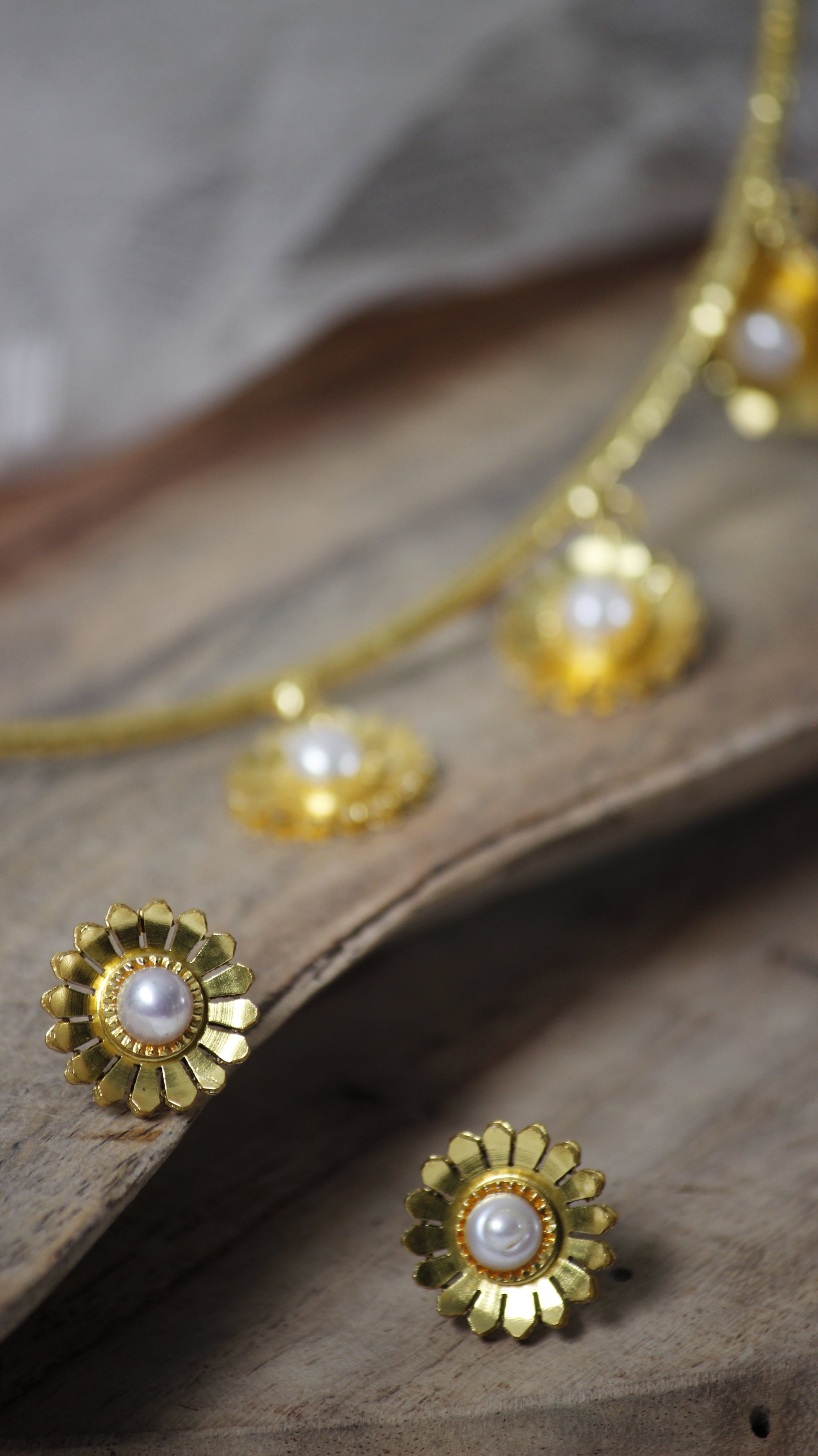 Graceful, delicate, and timeless— Our Dayra Set takes its muse from the soft elegance of daisy flowers. Each circular form reflects the daisy’s charm.. simple yet striking, crafted in brass 18k gold plating to radiate warmth and finesse