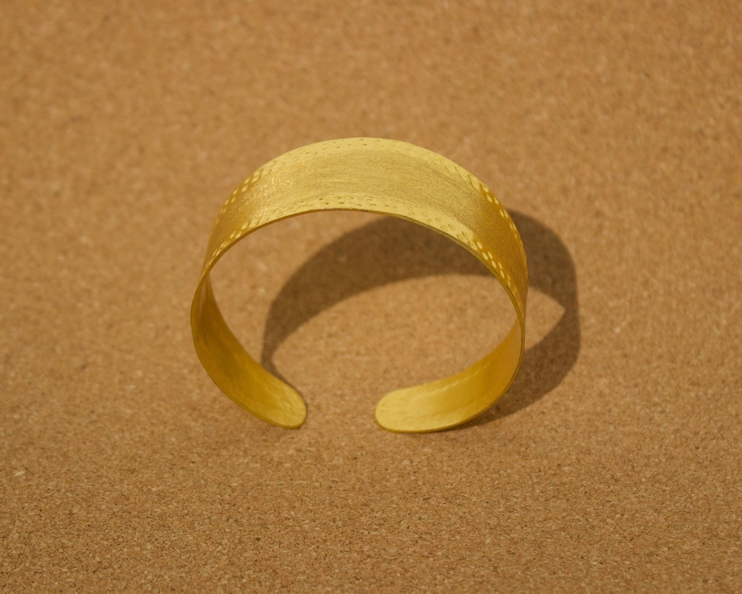 The Svara Cuff is a statement-making bracelet, handcrafted in pure brass and finished with an 18k gold plating. Its smooth edges and softly rounded form are accented with a subtle hammered texture, giving it a quiet rhythm and refined elegance — much like its name, Svara